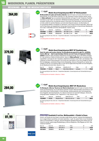 773319000 * MU020 Whiteboard 90 x 180 x 1,7 cm silber 1 364,00