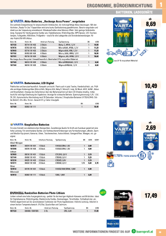 alle wichtigen Batteriegrößen (Micro/AAA, Mignon/AA, Baby/C, Mono/D, Lady, 9V-Block. 6F22, 6LR61, Akkus